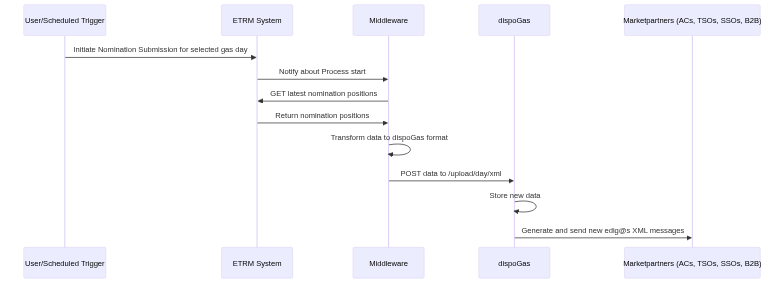 This guide aims to help with the implementation of an automatic interface between dispoGas and your ETRM (or via a Middleware Solution). It describes the business cases involved, the dispoGas API endpoints and describes the expected dataflows in detail.